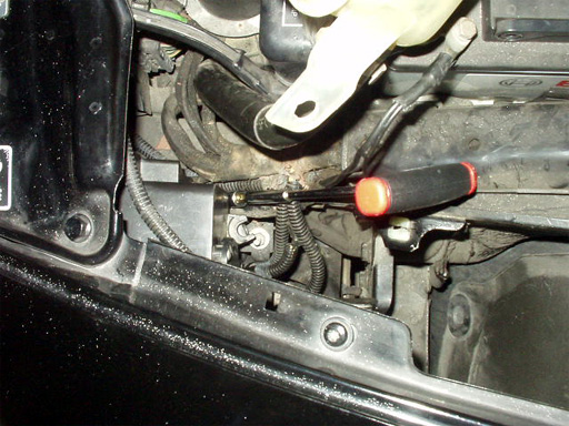 左側もロービーム調整は、ラジエーターリザーブタンクを取り外せば無理なく手が届きます。