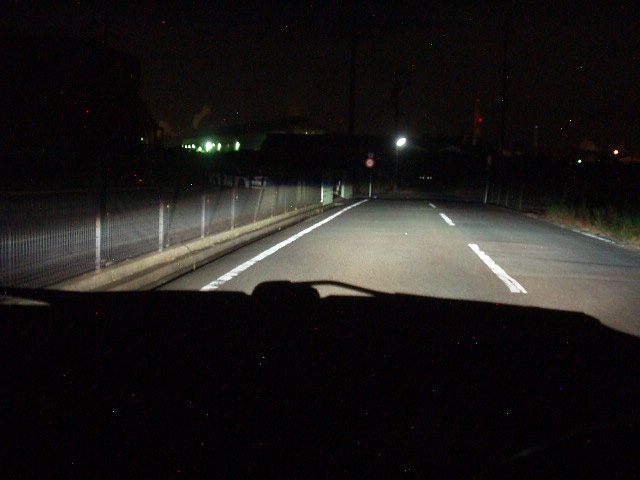 さて、ノーマルリフレクタ+遮光塗装HIDの照射はこんな感じでした。