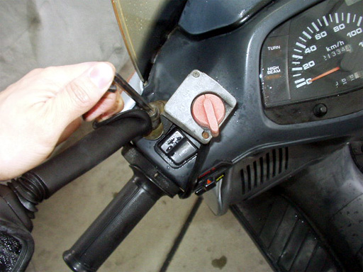 ハンドルカバーを留めるネジを全部と、ミラーも外してしまいます。