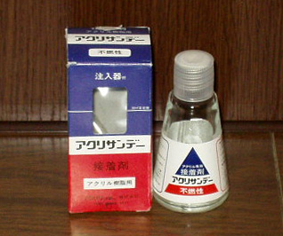 アクリル用接着剤はさらさらの液体で、割れ目に少量