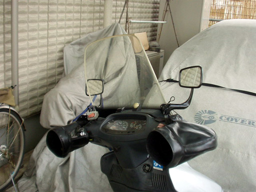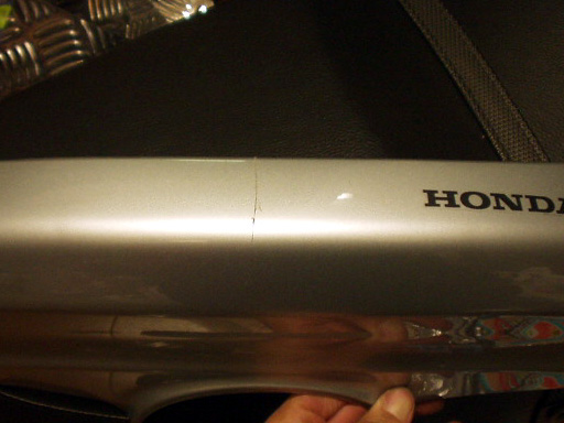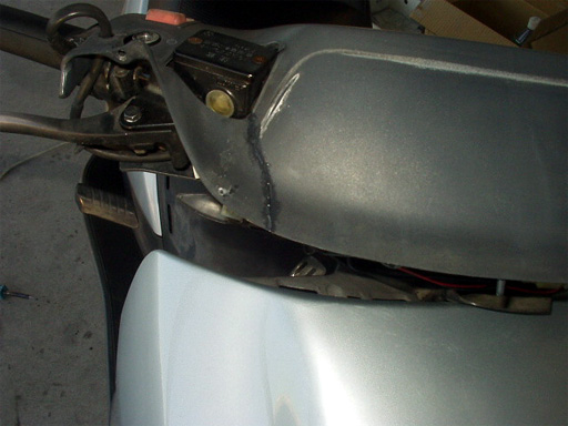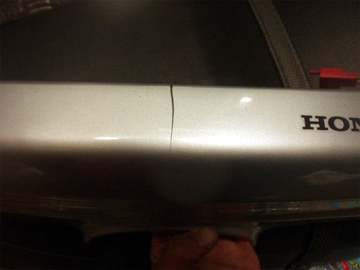 ハンドルカウルにはタテに大きなヒビが入っていました。