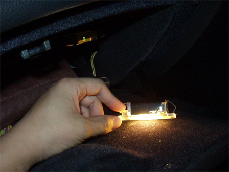 色合いに今ひとつ納得の行かなかった、グローブボックス内照明に使うことを考えていました。