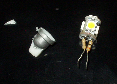 T10ソケット部分を割り開いて、抵抗に繋がる接点部分をむき出しに。