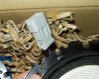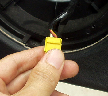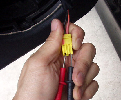 純正スピーカー端子2本それぞれに接続して、音が出る方がプラス。という判別法を試してみました。