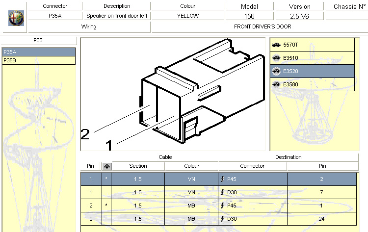 結果:左ドア側 紫/黒(+) 茶/紺(-) 右ドア側 白/黒(+) 赤/黄(-)
