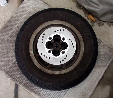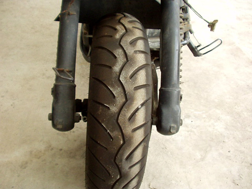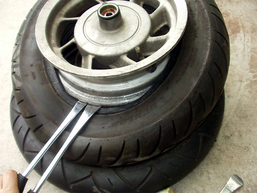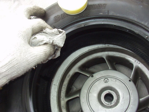 写真は今回使用するフロントタイヤを先代機から取り外した際の流用です。