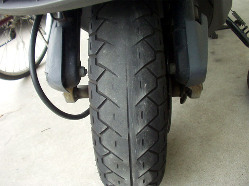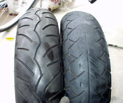 部分的に消耗して、梅雨時の走行に不安のあるフロントタイヤを交換しました。