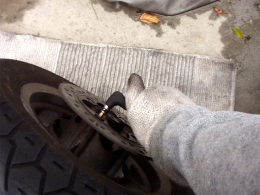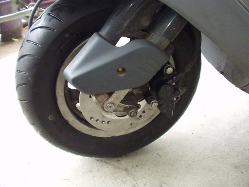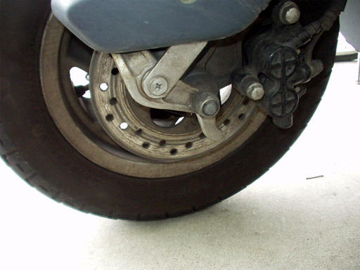 タイヤ・ブレーキキャリパーともに元通りに組みなおして作業終了。