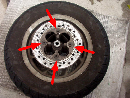 取り外したタイヤから、ブレーキディスクを取り外します。