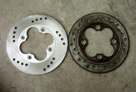 ブレーキディスクの新旧比較。新しいディスクは純正品ではありません。
