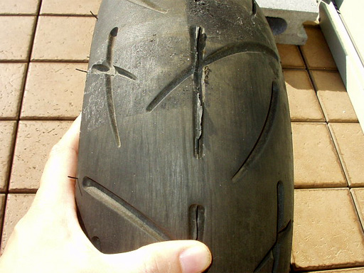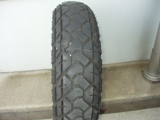 追記:このタイヤは恐ろしく摩耗が早く、通勤での使用で1180km走行したところで、雨天での使用が怖くなり早めに交換しました。中古ホイールのオマケ入手で、経年変化の具合も分からないとは言え、正直、品質は悪いと言わざるを得ないようです。