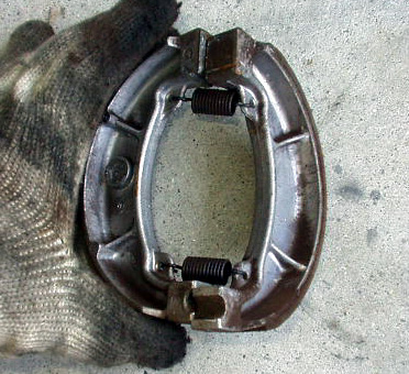 清掃後、先代機から部品取りしておいたブレーキシューと交換しました。