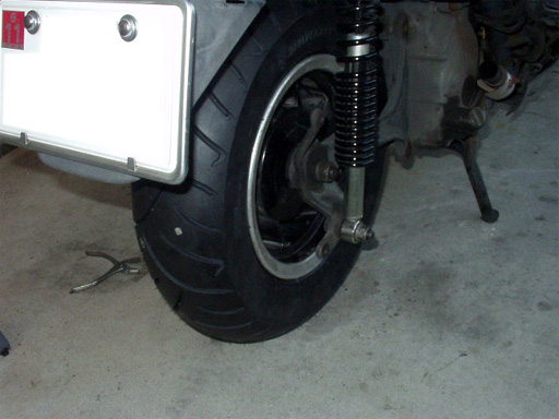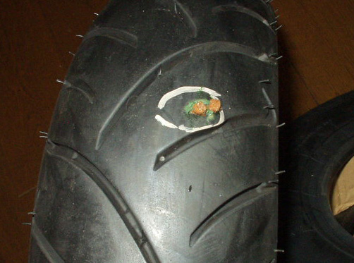 先日購入して取付けた、新品同様SCOOTSMART120/90-10・パンク補修済み