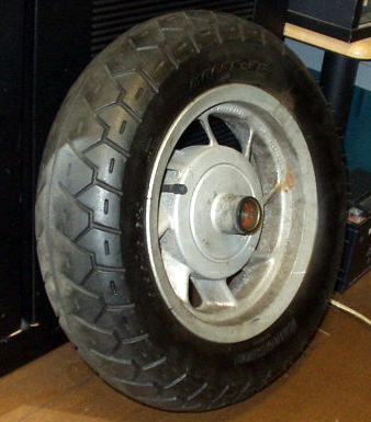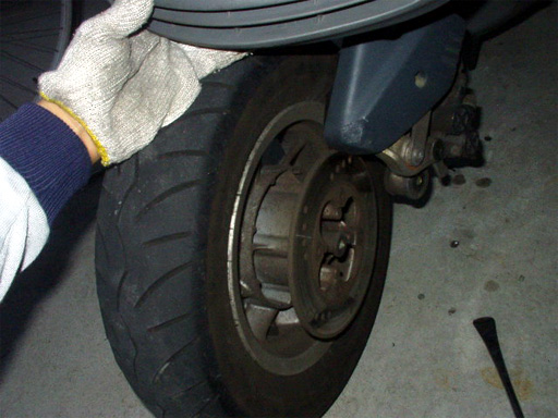 用意したタイヤ付きホイールを逆の手順で取付けます。