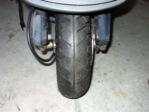 先代フリーウェイより部品取りした、ダンロップ SX01F 110/91-10を流用していました。