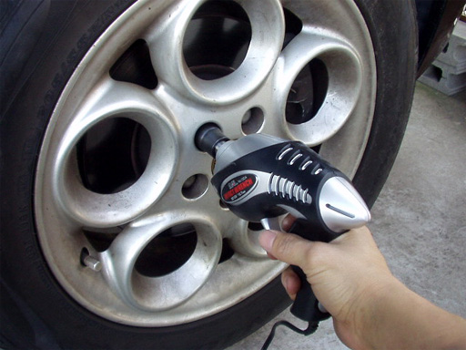 シガーソケット電源のインパクトレンチを使用。