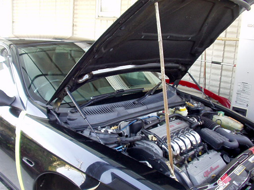 まず適当な棒で支えを作り、ダンパー基部の固定バネをマイナスドライバーでこじって取り外し。