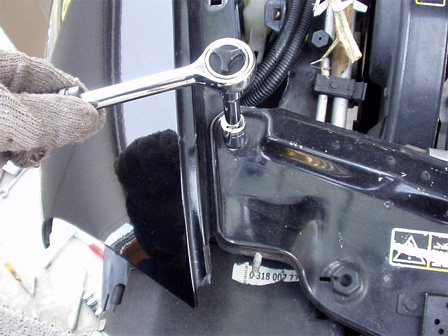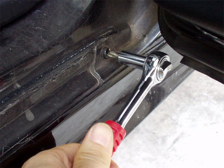 まずはジャッキアップしてウマをかけ、サイドスカートの固定ネジを前から三箇所ほど取り外しました。