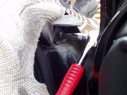 更にフェンダー内部のシール材で覆われたトルクスネジを外し