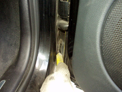 ドアを開けた中での2箇所固定の取り外し。