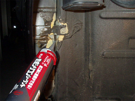 変成シリコーン系シール材を使用。シャーシブラックを吹き付けておきました。
