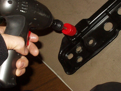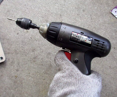 補修キットのM6サイズ用ドリルを使い、下穴を拡大します。