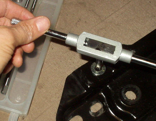 切りくずを取り除いた後、キットのネジきりタップを使用してネジを切っていきます。