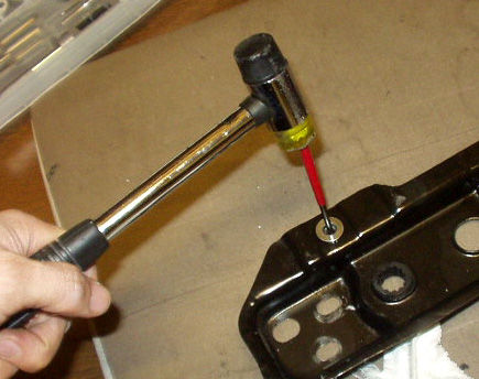 付属のピン降り金具をネジ穴に入れ、ハンマーで一撃するとその部分が折れ、きれいなネジ穴が再生されました。