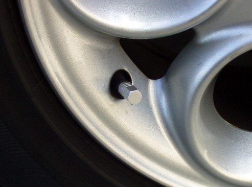 バルブキャップは純正ホイールに質感の似たつや消しアルミ製。自己満足ですね。