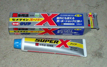 細かい点はセメダイン スーパーX で接着。更にシリコンコーキング剤にて裏打ちしています。