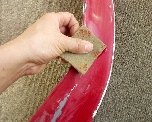 パテの乾燥を待ち、耐水ペーパーや3Mのスポンジ研磨シートで800番くらいまで研磨しました。