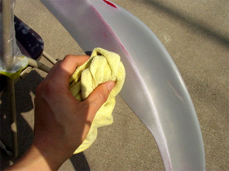 研磨した部分を一応シリコンオフにて脱脂、定着剤を薄く吹き、サーファーサー処理。