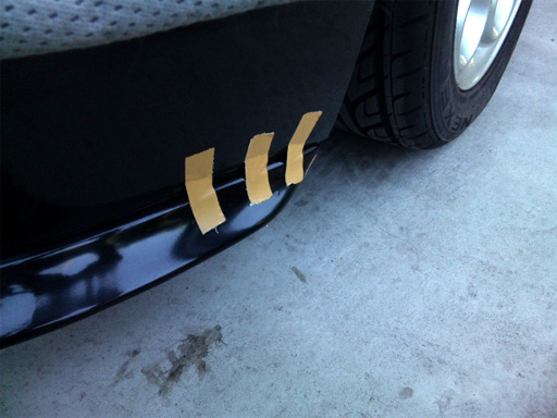 仮止めして最低地上高低下最小限の位置でマーキング。
