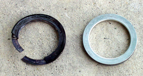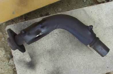 排気パイプ取り外し。2箇所のボルト留めです。ガスケットは予想通りガビガビでした。右は新品