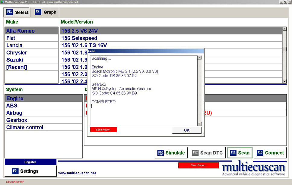 「multiecuscan」にて、問題なくエンジンとABSにアクセスすることが出来ました。