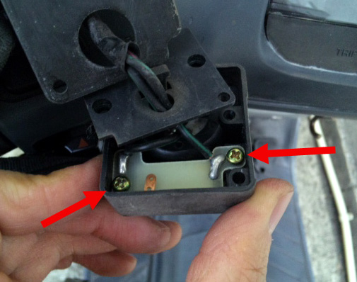 配線のカバーを固定するネジを2本外して、コードを露出させると二本とも断線。