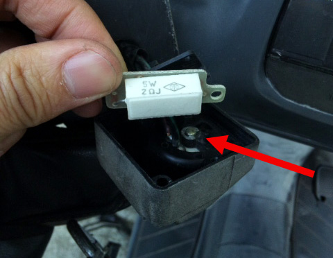 強弱切替の抵抗らしい部品を外すと、つまみがクリップで留められていました。