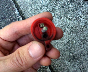 内部の接点も、つまみ操作のクリック感を出す鉄球もバネで押さえられていて、無造作に外すと確実に飛んで無くしてしまいます。つまみの取り外しも慎重に行いました。