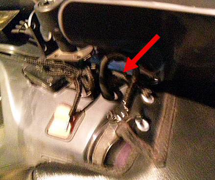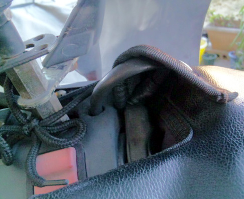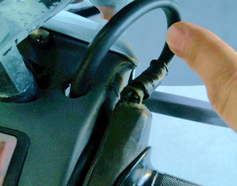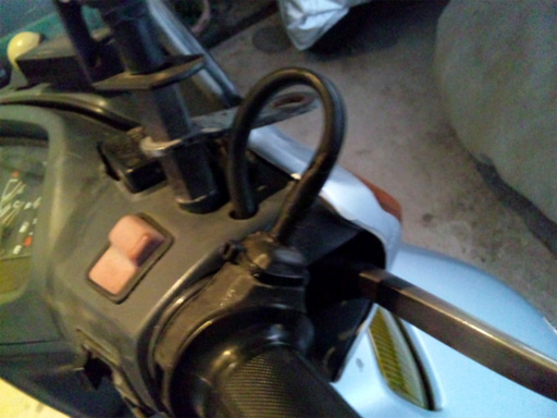 ハンドルカバーに引っかかって、右ハンドル側コードが変な形に。