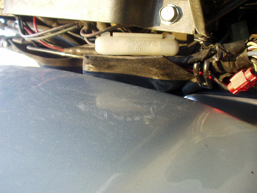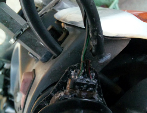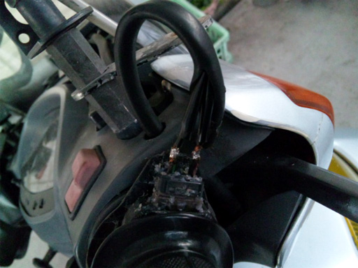 今度はヒューズ切れを疑い、ハンドルカウル内部を確認することに。