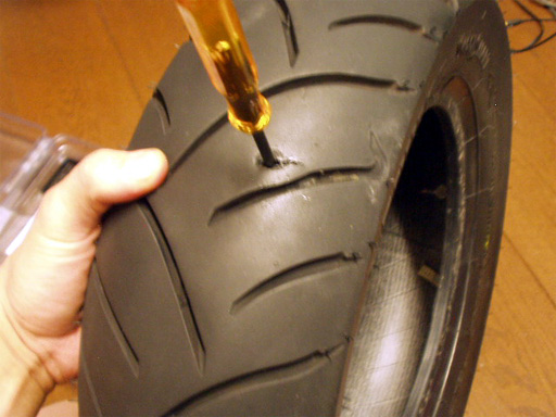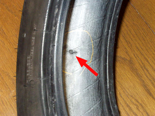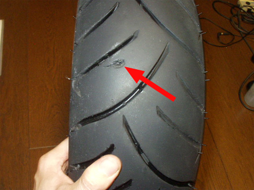 タイヤの溝はまだ残っていましたが、こうなってしまっては仕方がありません。