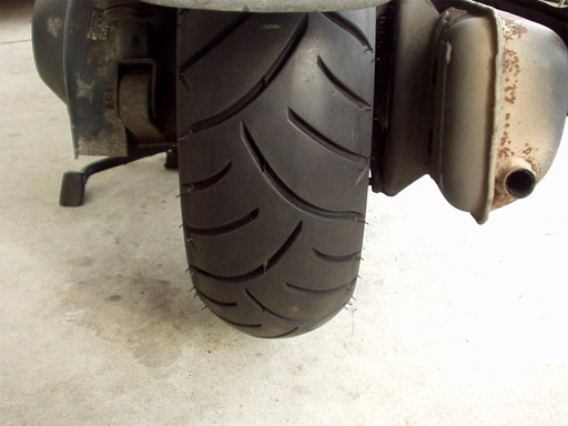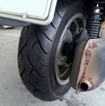 換えて取り付けたのは、この前内面からのパンク修理をした、ダンロップ SCOOTSMART 120/90-10。