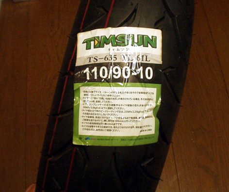 使用していたTIMSUN TS-635 110/90-10 フロント用として購入したものの、リア用途と指定があったため、ひとサイズ小さいものですが使用。