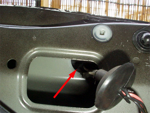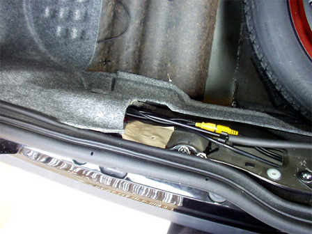 カバーを外すと、右後方にナンバー灯へ繋がるコードとバンパーへの開口部があります。