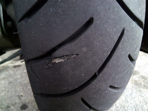 現在フリーウェイが履いているタイヤは、以前内面からのパンク補修をしたダンロップ SCOOTSMARTです。