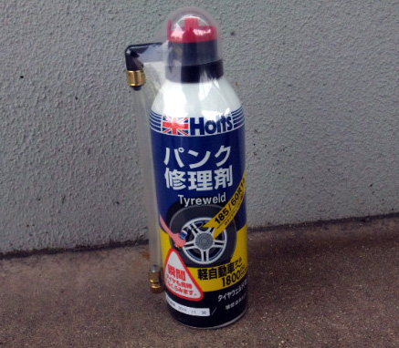 まもなく梅雨の季節ですので、空気圧が下がってしまうとハイドロプレーニングが起こりやすくなり危険です。タイヤとしての賞味期限はまだ十分残っているため、パンク修理剤を試してみることにしました。