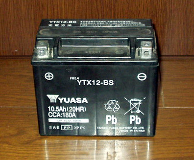 中古購入時に交換されていた、台湾ユアサ製「YTX12-BS」約三年半もってくれました。