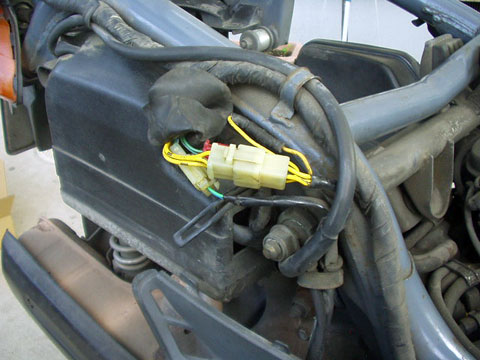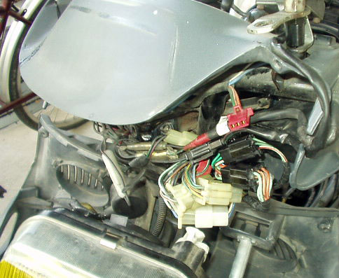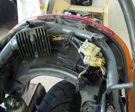 ハンドルカバー内のワイヤーハーネスとの接続カプラ・車体後部レギュレーターやテールランプなどへの配線カプラ