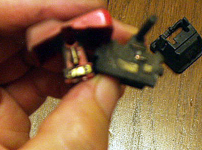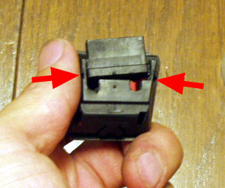 まずディマスイッチ。固定爪を精密マイナスドライバーで押し外し分解します。