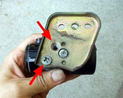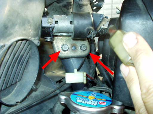 矢印部分のネジを左右を外してカウルを取り外します。